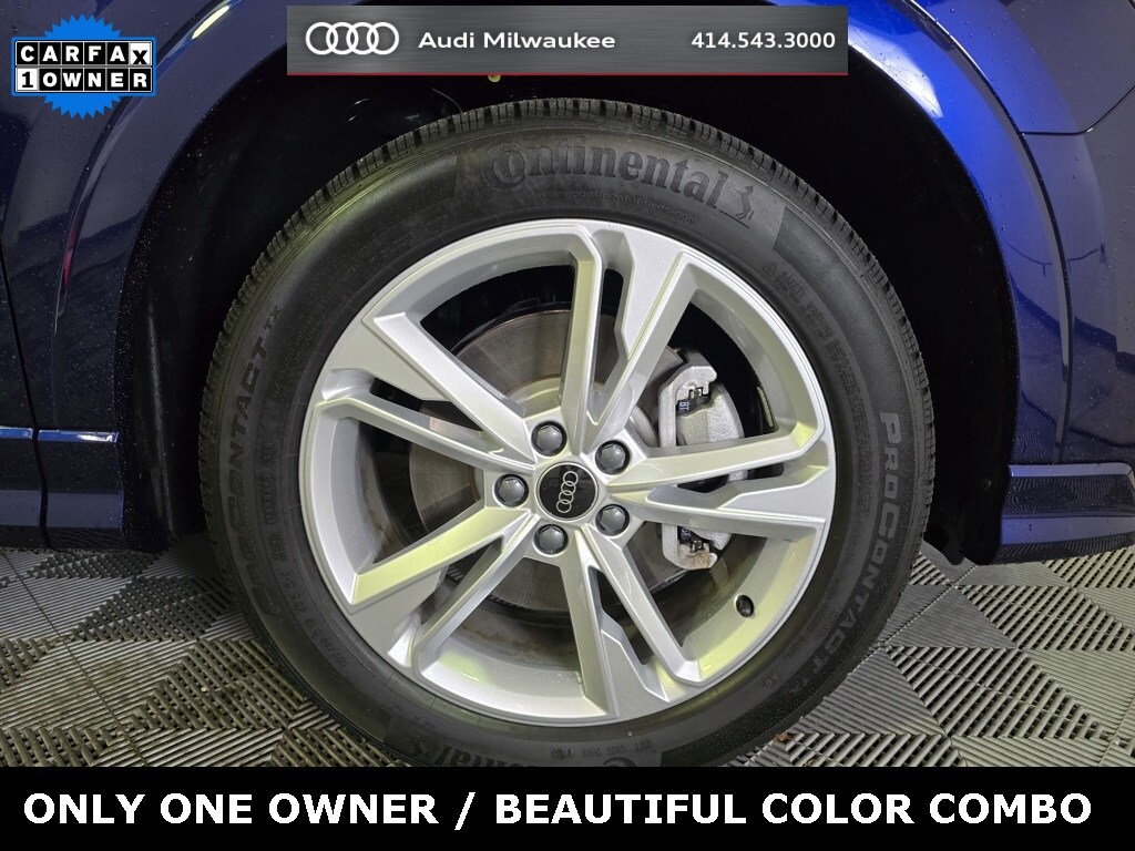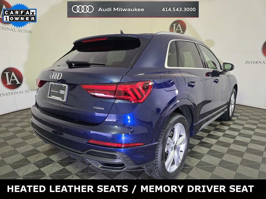 CARFAX One-Owner. Certified. Navarra Blue Metallic 2024 Audi Q3 Premium Plus S Line quattro quattro 8-Speed Automatic with Tiptronic 2.0L 4-Cylinder TFSI 10 Speakers, 19" Wheel Package, ABS brakes, Alloy wheels, Audi Advanced Key, Audi Beam-Rings, Audi smartphone interface (Apple CarPlay/Android Auto), Auto High-beam Headlights, Automatic temperature control, Convenience Package, Driver door bin, Driver Seat Memory, Electronic Stability Control, Exterior Parking Camera Rear, Heated door mirrors, Heated Front Bucket Seats, Leather Seating Surfaces, Leather Shift Knob, LED Interior Lighting Plus Package, Outside temperature display, Panic alarm, Power driver seat, Power Liftgate, Power moonroof: Panoramic, Premium Plus Package, Rain sensing wipers, Speed control, Top View Camera System, Wheels: 19" 5-Double-Spoke Dynamic Design, Wireless Phone Charging Pad.