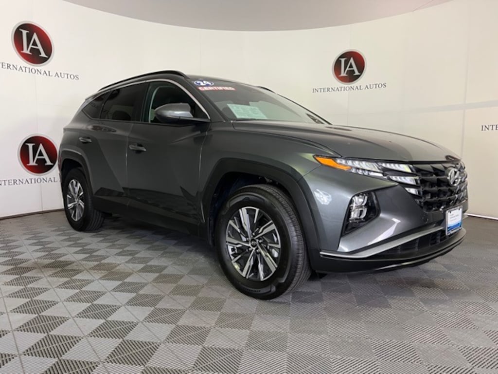 Hyundai Tucson Hybrid 2024 Amazon Gray Tucson Hybrid Blue AWD, 4D Sport Utility, I4, 6-Speed Automatic, AWD, Amazon Gray, Black w/Stain & Odor Resistant Cloth Seat Trim, 6 Speakers, Alloy wheels, Apple CarPlay & Android Auto, Automatic temperature control, Brake assist, Exterior Parking Camera Rear, Fully automatic headlights, Heated front seats, Navigation System, Panic alarm, Power Liftgate, Radio: AM/FM/HD Audio System, Security system, Steering wheel mounted audio controls, Telescoping steering wheel, Variably intermittent wipers.