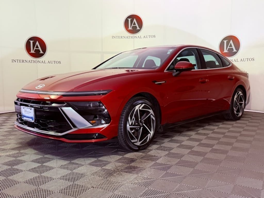 Hyundai Sonata 2025 Ultimate red Sonata SEL Convenience, 4D Sedan, I4, 8-Speed Automatic, FWD, Ultimate red, Black Cloth, 18" x 7.5J Aluminum Alloy Wheels, 6 Speakers, Apple CarPlay & Android Auto, Automatic temperature control, Brake assist, Exterior Parking Camera Rear, Fully automatic headlights, Heated door mirrors, Heated front seats, Navigation System, Panic alarm, Power moonroof, Security system, Speed-Sensitive Wipers, Steering wheel mounted audio controls, Telescoping steering wheel, Traction control.
