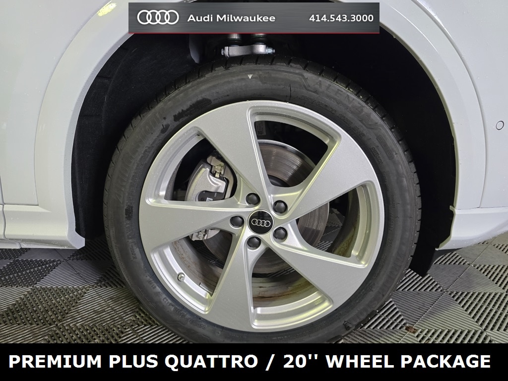 Glacier White Metallic 2025 Audi Q5 2.0T Premium Plus quattro quattro 7-Speed Automatic S tronic 2.0L 4-Cylinder TFSI ABS brakes, Adaptive Cruise Assist, Alloy wheels, Audi Beam-Rings, Auto High-beam Headlights, Auto tilt-away steering wheel, Auto-dimming Rear-View mirror, Automatic temperature control, Dynamic Interaction Light, Exterior Parking Camera Rear, Head-Up Display, Headlight Washers, Heated Front Bucket Seats, Heated Steering Wheel, Leather Seating Surfaces, LED Interior Lighting Pro Package, Memory seat, Navigation system: Audi Navigation Plus, Outside temperature display, Panoramic Sunroof, Power Liftgate, Premium Plus, Rain sensing wipers, Security system, Top View Camera System, Wheels: 20" 5-Arm Design.