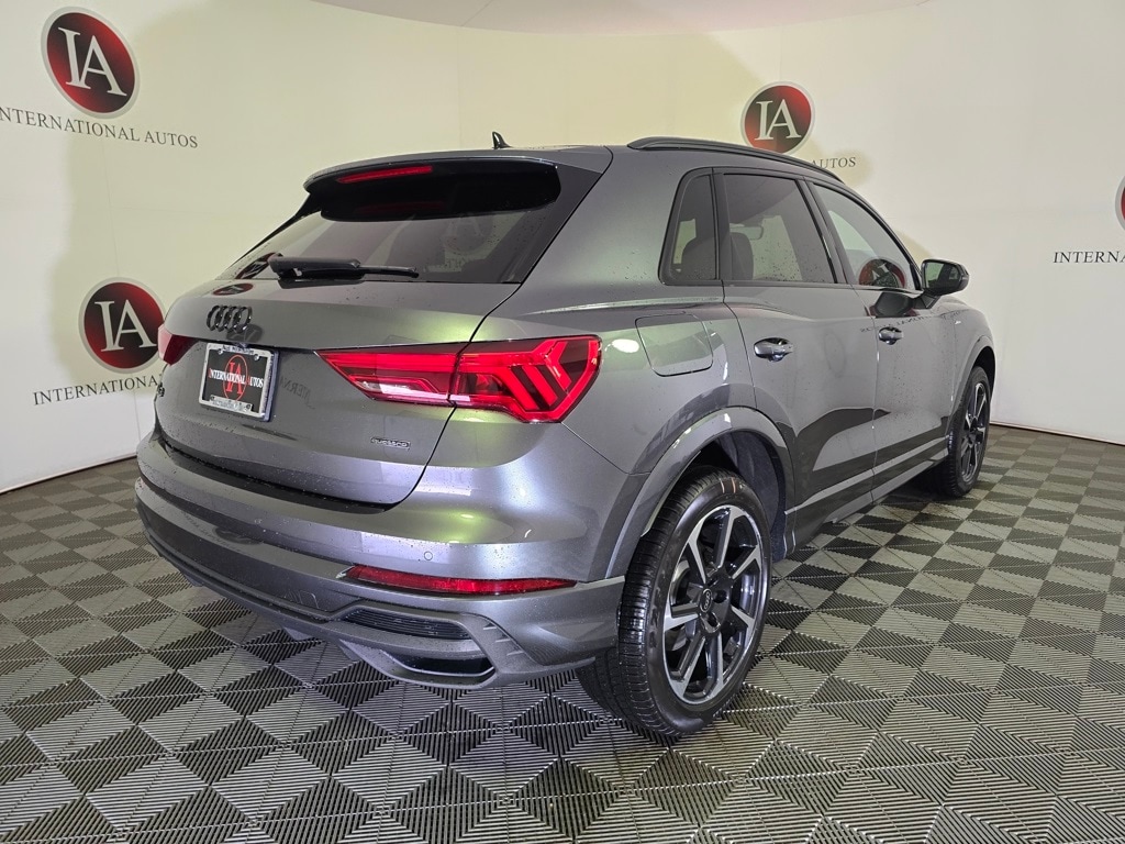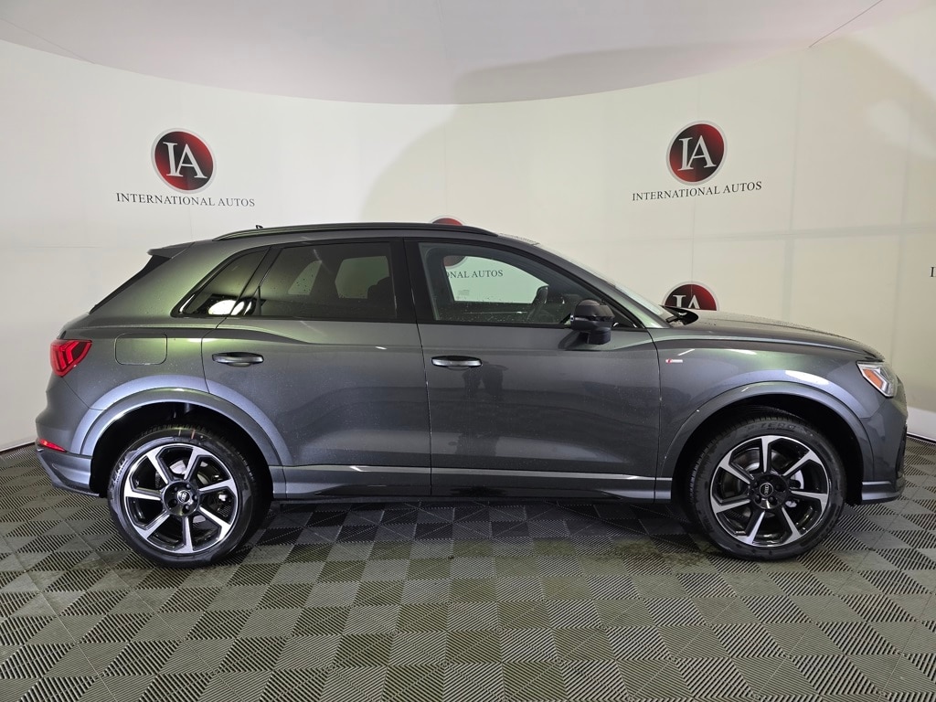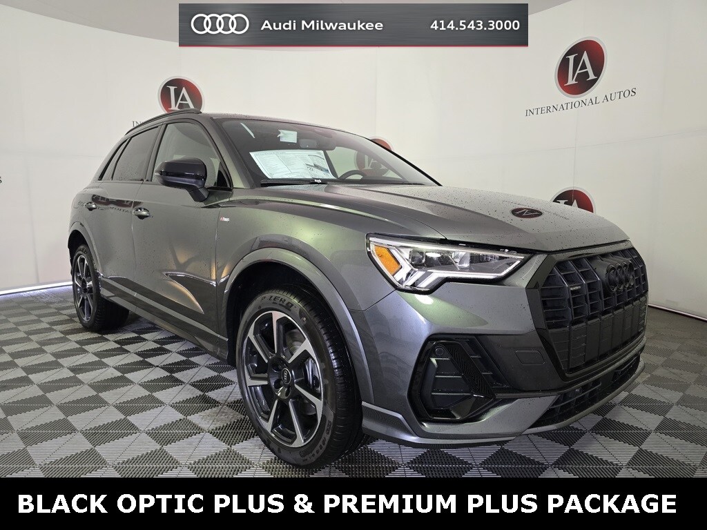 Daytona Gray Pearl Effect 2025 Audi Q3 Premium Plus S Line quattro quattro 8-Speed Automatic with Tiptronic 2.0L 4-Cylinder TFSI 10 Speakers, ABS brakes, Alarm w/Motion Sensor, Alloy wheels, Audi Advanced Key, Auto High-beam Headlights, Auto-Dimming Power-Folding Exterior Mirrors, Auto-Dimming Rear-View Mirror, Automatic temperature control, Black Exterior Mirrors, Black Exterior Trim & Badges, Black Optic Plus Package, Black Roof Rails, Carbon Inlays, Convenience Package, Driver Seat Memory, Exterior Parking Camera Rear, Garage Door Opener (HomeLink), Heated Front Bucket Seats, Illuminated entry, Leather Seating Surfaces, LED Interior Lighting Package, LED Interior Lighting Plus Package, Power driver seat, Power Liftgate, Power moonroof: Panoramic, Premium Plus Package, Rain sensing wipers, SiriusXM, SONOS Premium Sound System w/3D Sound, Speed control, Sport Front Bucket Seats w/S Embossing, Stainless Steel Pedal Caps, Top View Camera System, Wheels: 19" 7-Spoke-Rotor-Design, Wireless Phone Charging Pad.