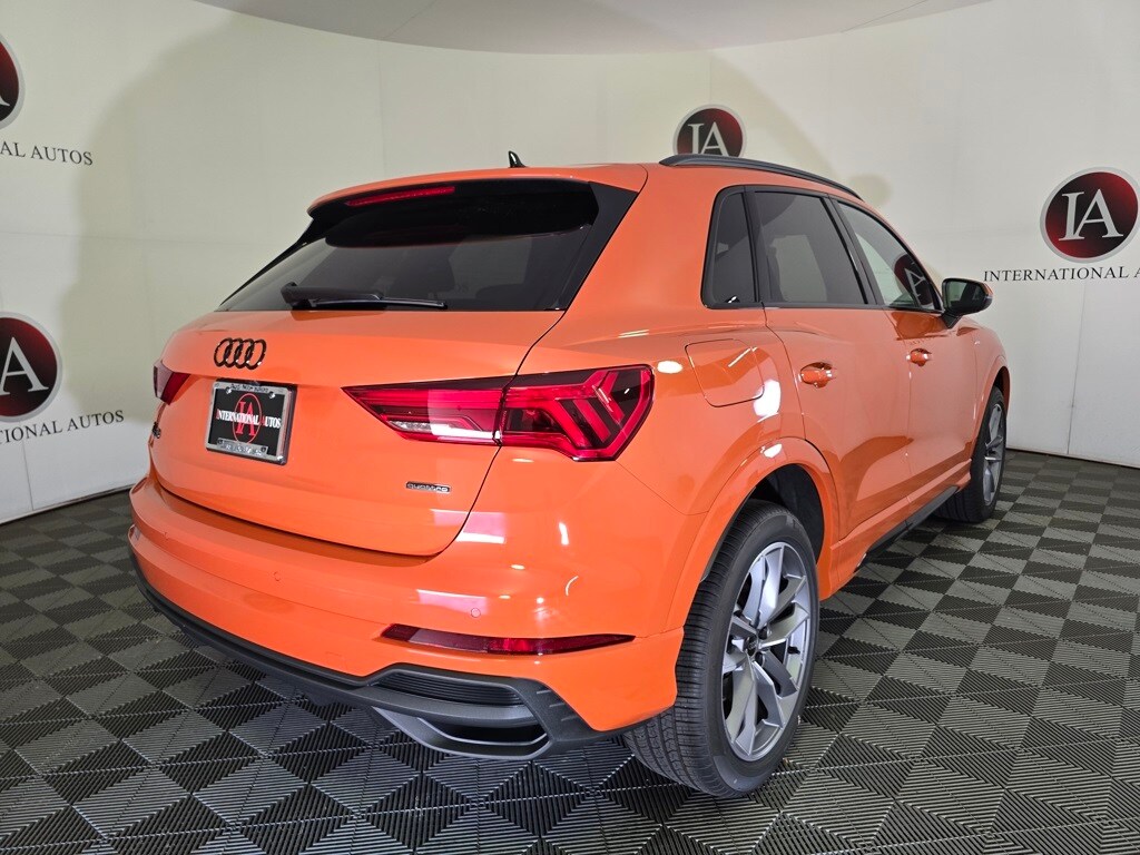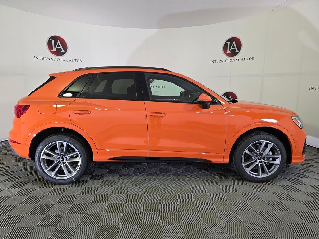 Pulse Orange 2025 Audi Q3 Premium S Line quattro quattro 8-Speed Automatic with Tiptronic 2.0L 4-Cylinder TFSI 10 Speakers, Alarm w/Motion Sensor, Alloy wheels, Audi Advanced Key, Audi Beam-Rings, Auto High-beam Headlights, Auto-Dimming Power-Folding Exterior Mirrors, Auto-Dimming Rear-View Mirror, Automatic temperature control, Black Exterior Trim, Black Optic Sport Package, Black Roof Rails, Convenience Package, Driver Seat Memory, Exterior Parking Camera Rear, Garage Door Opener (HomeLink), Heated Front Bucket Seats, Leather Seating Surfaces, LED Interior Lighting Package, Outside temperature display, Power Liftgate, Power moonroof: Panoramic, Rain sensing wipers, SiriusXM, Speed control, Sport Front Bucket Seats, Wheels: 19" 5-Double-Arm Design, Wireless Phone Charging Pad.