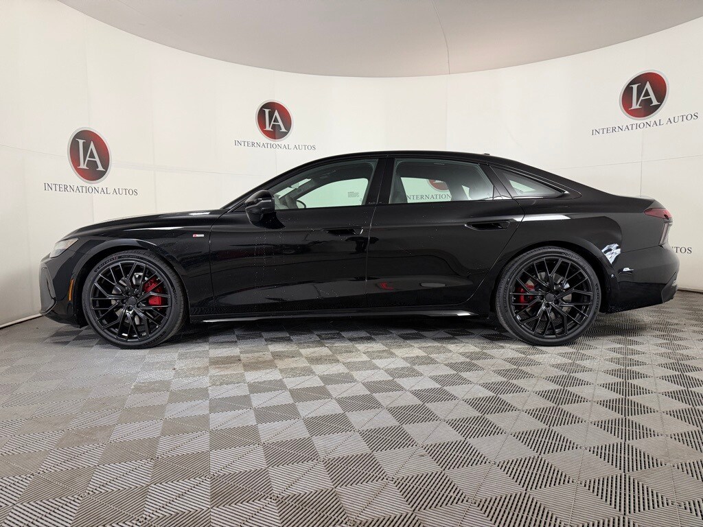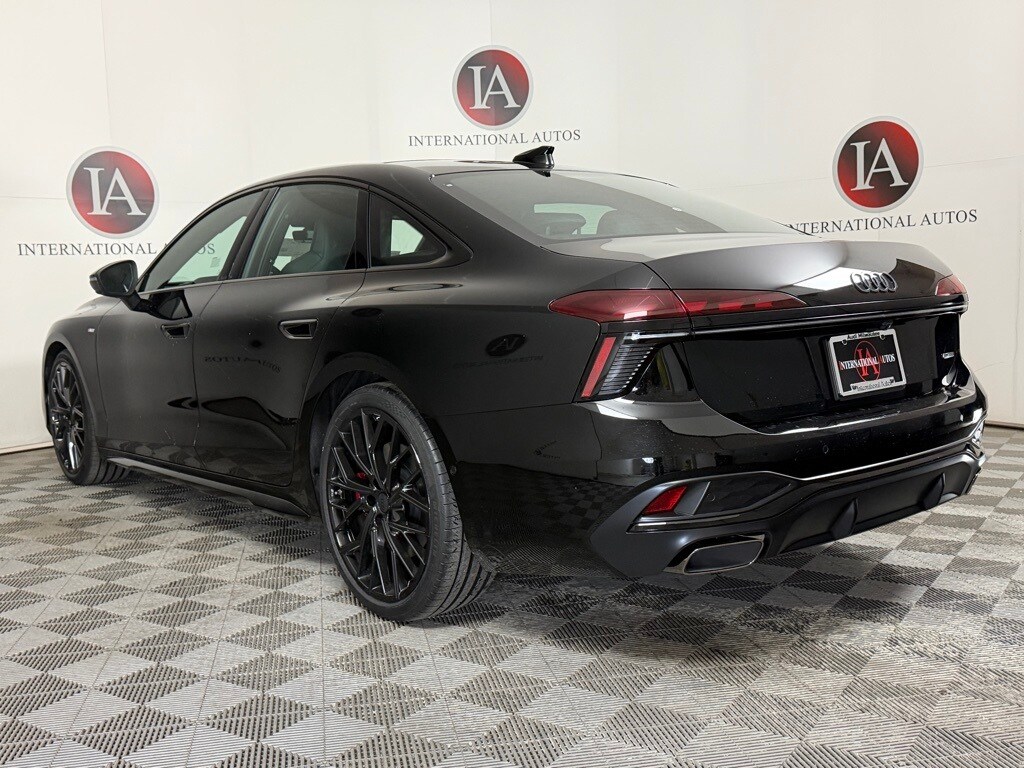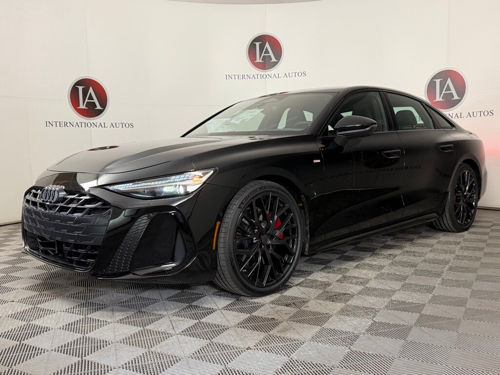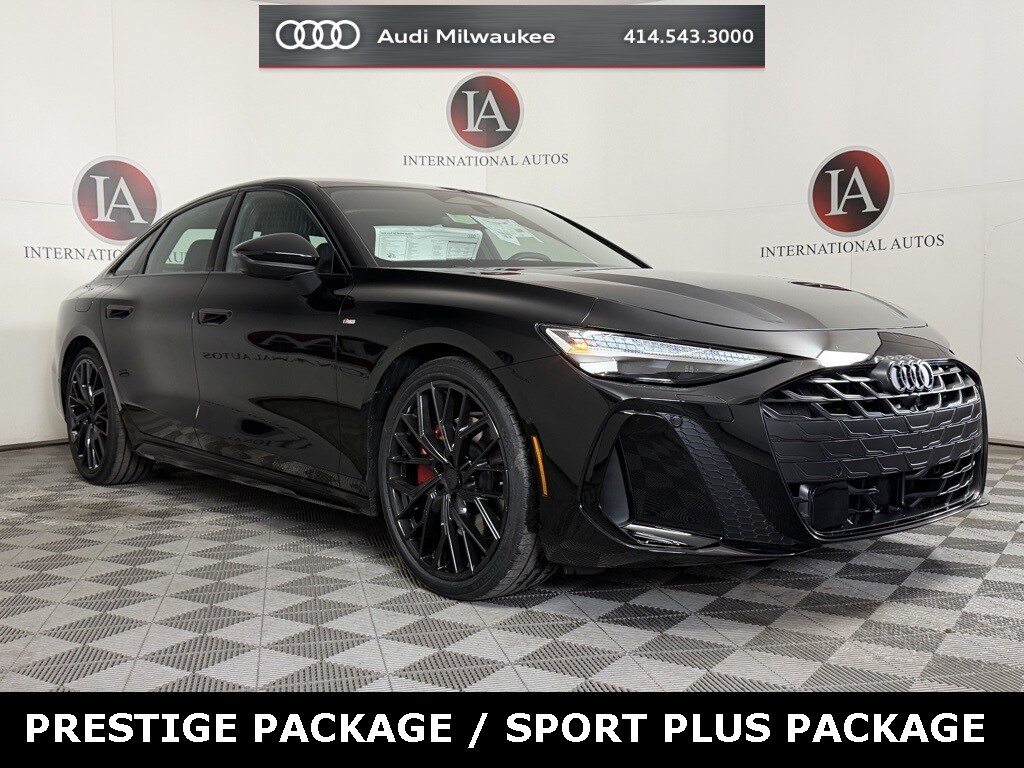 Mythos Black Metallic 2026 Audi A6 3.0 quattro quattro 7-Speed Automatic 3.0L V6 Turbocharged DOHC 24V LEV3-ULEV70 362hp quattro, Black w/Fine Nappa/Pearl Nappa Leather Seating Surfaces, 3-Spoke Flat Top/Bottom Steering Wheel, 4-Zone Automatic Climate Control, 7 Front Digital DRL Signatures, Acoustic Front and Rear Side Window, Adaptive Cruise Assist, All-Wheel Steering, Alloy wheels, Aluminum Front Door Sill Inlays, Animation For Headlights and Taillights, Anthracite Audi Rings, Audi Beam-Rings, Auto High-beam Headlights, Auto tilt-away steering wheel, Automatic temperature control, Bang & Olufsen Front Headrest Speakers, Bang & Olufsen Sound System with 3D Sound, Black Exterior Trim, Black Headliner, Black Wheel Center Caps, Carbon Micro-Twill Inlays, Comfort Air Suspension, Dark Chrome Exhaust Tips, Dinamica Softwrap and Armrests, Dynamic Interaction Light, Exterior Parking Camera Rear, Fine Nappa/Pearl Nappa Leather Seating Surfaces, Front Sport Seats Plus with Massage Function, Head-Up Display, Headlight Washers, Heated Rear Seats, Heated Steering Wheel, Heated Steering Wheel with Hands-on Detection, Matrix-Design LED Headlights with Digital DRL, MMI Passenger Display with 10.9" Screen, Model Badge Delete, Navigation system: Audi MMI Navigation plus with Touch Response, Power Door Closers, Power Rear Window Sunshade, Prestige Package, Rain sensing wipers, Red Brake Calipers, S Line Exterior, Sport Plus Package, Sport Rear Differential, Sport Suspension (-20 Mm) Ride Height, Stainless Steel Pedals Caps, Tire Mobility Kit, USB Power Delivery (2x60W Front and 2x100W Rear), Ventilated front seats, Wheels: 21" Multispoke-Twist Design Black Metallic Finish.