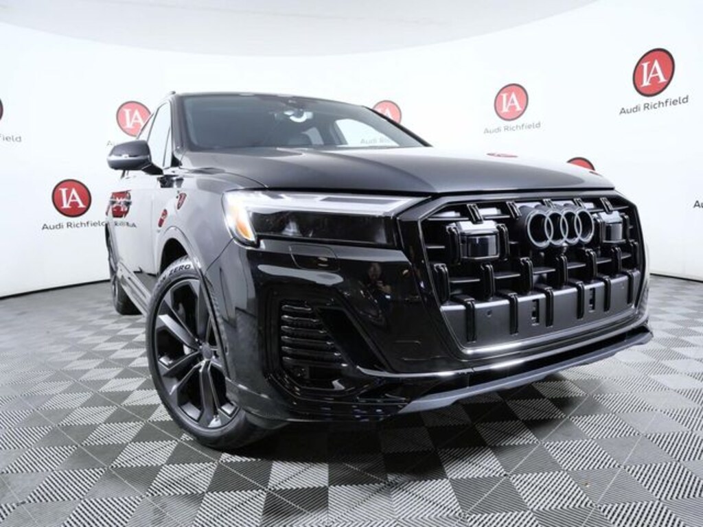 ** Adaptive Cruise Control, ** Alloy Wheels / Premium Wheels, ** Apple CarPlay/Android Auto, ** Automatic Emergency Braking, ** Bluetooth, Hands Free, ** Brake Assist, ** Chrome Wheels / Premium Wheels, ** Cross Traffic Alert, ** Cruise Control, ** Heated Seats, ** Keyless Entry, ** Keyless Start, ** LED Headlights, ** Lane Departure Warning, ** Leather Seats, ** Navigation System, ** Panoramic Roof / Sunroof, ** Premium Sound System / Premium Audio, ** Rain Sensing Wipers, ** Rear Cross Traffic Alert, ** Stability Control, ** Steering Wheel Controls, ** Sunroof/Moonroof, ** Tow Hitch / Trailer Hitch, **Camera Backup, Q7 55 Premium Plus quattro, 3.0L TFSI, quattro, Mythos Black Metallic, Black Leather, 4-Way Power Lumbar For Passenger Seat, Adaptive Air Suspension, Anthracite Gray Audi Rings, Bang & Olufsen Premium Sound System with 3D Sound, Black Door Blades, Black Exterior Trim, Black Grille, Black Optic Package, Black Roof Rails, Black Wheel Center Caps, Black Window Surrounds, Control Buttons in Gloss Black with Haptic Feedback, Dark Chrome Exhaust Tips, Dual-Pane Acoustic Glass For Side Windows, Four-Zone Automatic Climate Control, Heated Rear Seats, Heated Steering Wheel, Illuminated Door Sills, LED Interior Lighting Plus Package, Navigation system: Audi MMI Navigation plus with Touch Response, Power Soft-Closing Doors, Premium Plus Package, Rear Door/Side Windows and Tailgate Sunshades, Top View Camera System with Virtual 360 View, Ventilation For Front Seats, Wheels: 20" 5-Double-Spoke, Wheels: 21" 5-Double-Spoke-Module-Design with Matte Gray Finish. 2026 Audi Q7 55 Premium Plus Not all customers may qualify for all rebates listed, some may require financing through AFS OAC , see dealer for details. Price includes: $5000 - National Customer Credit. Exp. 04/30/2026