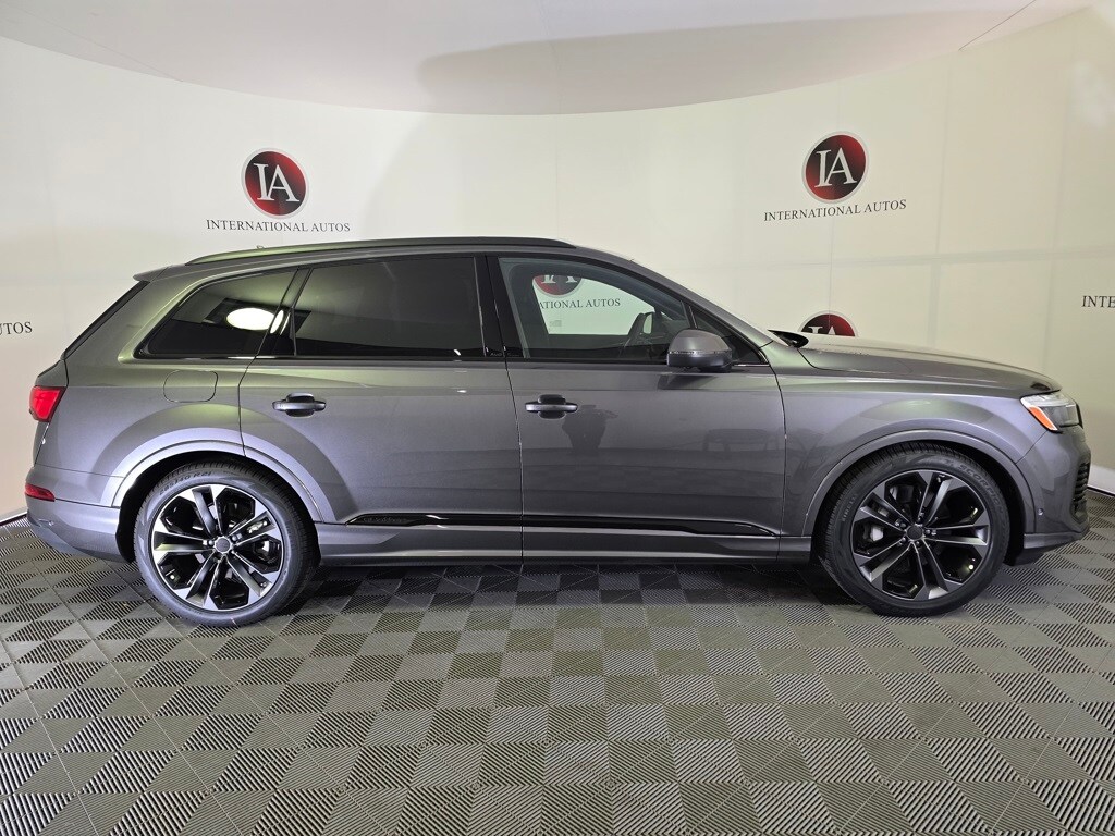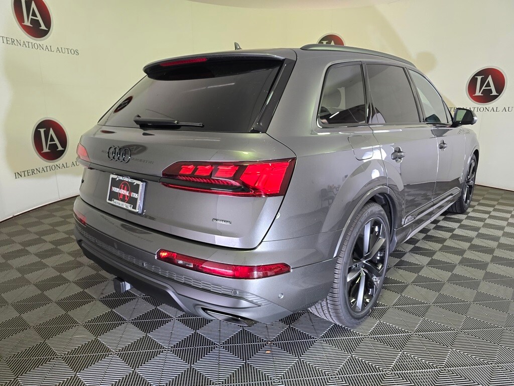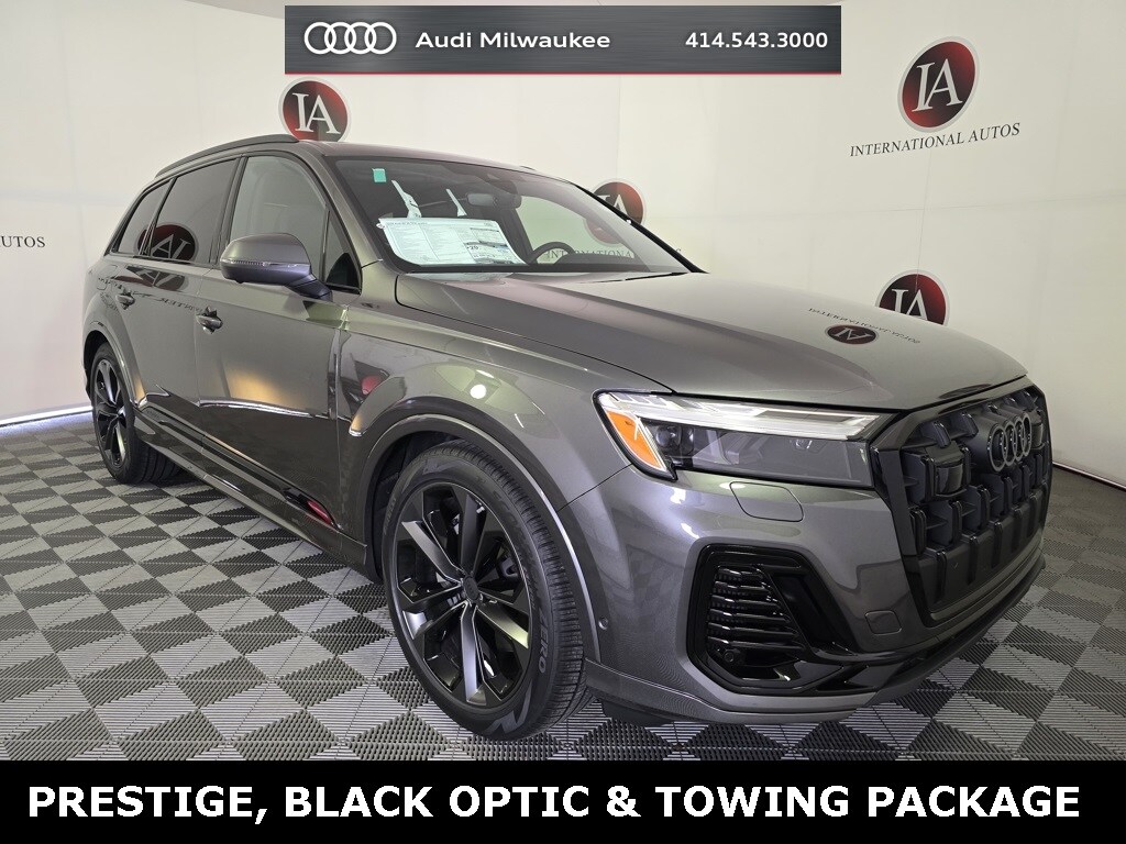Gray 2026 Audi Q7 55 Prestige quattro quattro 8-Speed Automatic with Overdrive Electric Motor Electric Motor, 3rd row seats: bench, Active Cruise Control, Adaptive suspension, Alloy wheels, Auto High-beam Headlights, Automatic temperature control, Bang & Olufsen Premium 3D Sound System, Black Optics Exterior, Black Optics Package, Black Roof Rails, Dark Chrome Exhaust Pipe, Exterior Parking Camera Rear, Garage door transmitter: HomeLink, Heads-Up Display, Heated front seats, Heated rear seats, Heated steering wheel, Heated/Ventilated Power Front Seats, Leather Seating Surfaces, Memory seat, Navigation System, Navigation system: Audi MMI Navigation with Touch Response, Outside temperature display, Power Liftgate, Power moonroof: Panoramic, Rain sensing wipers, Security system, Trailer Hitch (7,700lbs), Ventilated front seats, Wheels: 9.5J x 21" 10 Spoke Star Design.