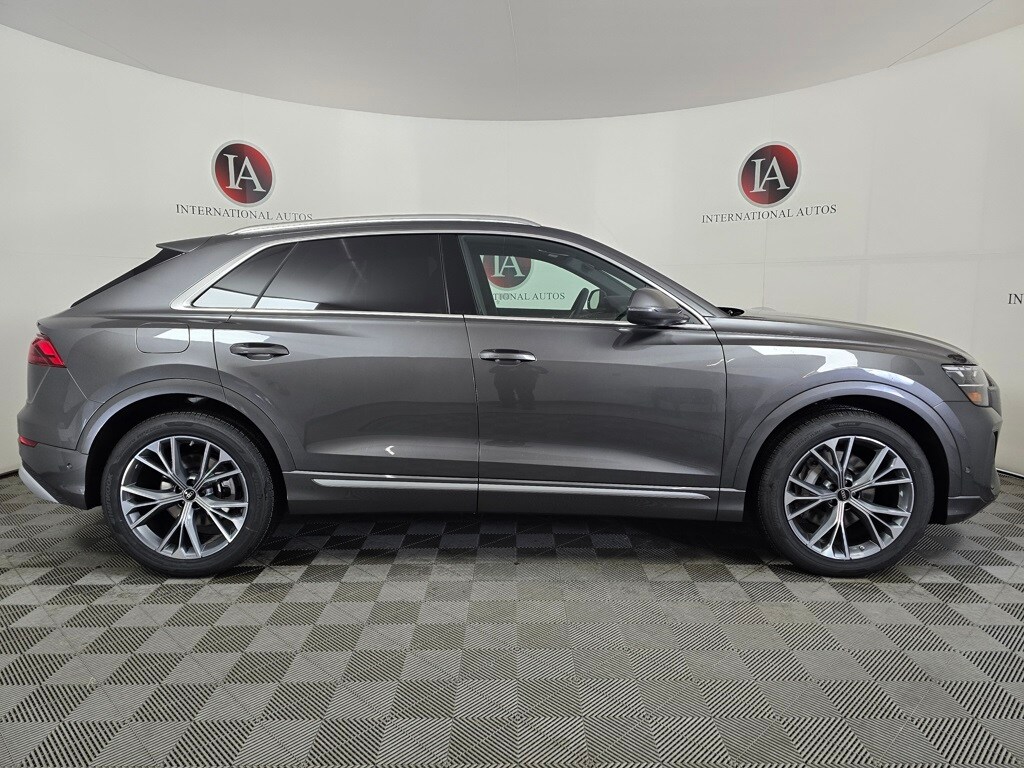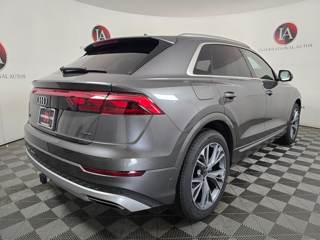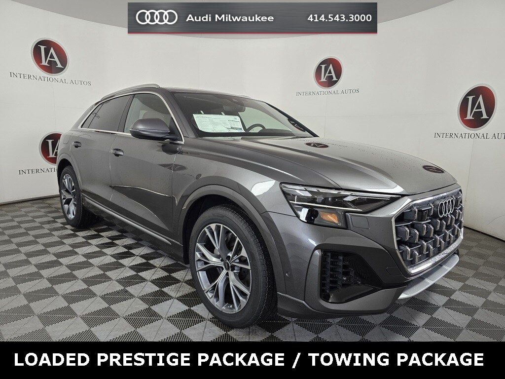 Samurai Gray Metallic 2026 Audi Q8 55 Prestige quattro quattro 8-Speed Automatic with Tiptronic 3.0L TFSI 4-Way Power Lumbar For Passenger Seat, 4-Zone Automatic Climate Control, 7-Pin Adapter, ABS brakes, Active Cruise Control, Adaptive Air Suspension, All-Wheel Steering, Alloy wheels, Auto High-beam Headlights, Auto-dimming door mirrors, Bang & Olufsen Premium Sound System with 3D Sound, Compass, Control Buttons in Gloss Black with Haptic Feedback, Dual-Pane Acoustic Glass For Side Windows, Electronic Stability Control, Exterior Parking Camera Rear, Front dual zone A/C, Front Seats with Ventilation, Head-Up Display, Heated door mirrors, Heated Front Bucket Seats, Heated front seats, Heated Rear Seats, Heated Steering Wheel, Illuminated Door Sills, Illuminated entry, Individual Contour Front Seats, Intersection Assist, LED Interior Lighting Plus Package, Low tire pressure warning, Massage Function For Front Seats, Memory seat, Memory Seat Function For Front Passenger, Navigation System, Navigation system: Audi MMI Navigation plus with Touch Response, OLED Taillights, Power Liftgate, Power moonroof: Panoramic, Power Rear Side Windows with Manual Tailgate Sunshades, Power Soft-Closing Doors, Prestige Package, Rain sensing wipers, Remote keyless entry, Remote Park Assist Plus, Top View Camera System with Virtual 360 View, Traction control, Trailer Hitch, Valcona/Cricket Leather Seating Surfaces, Wheels: 21" 5-W-Spoke Design with Bicolor Finish.