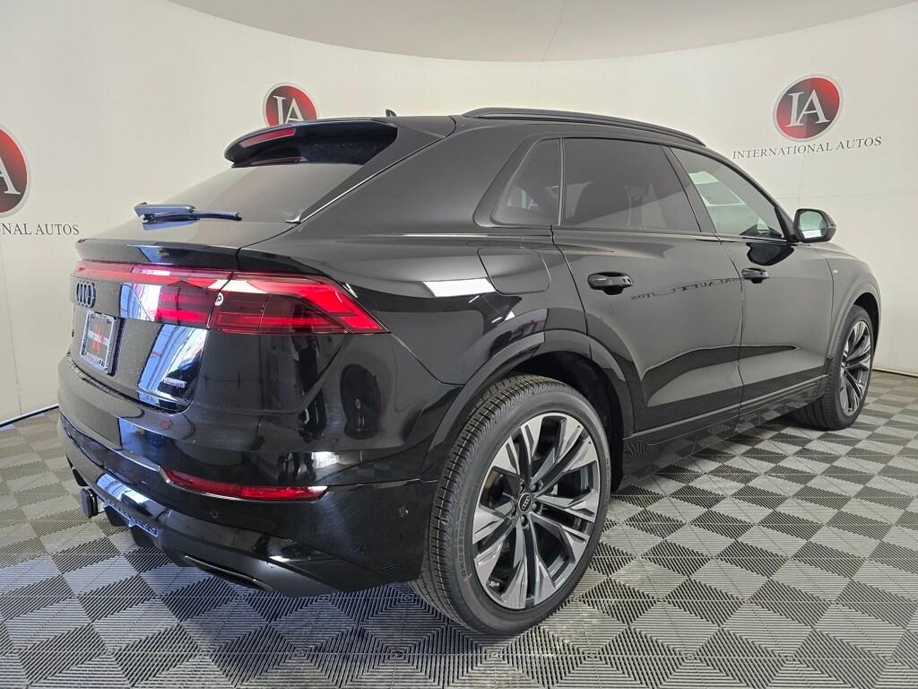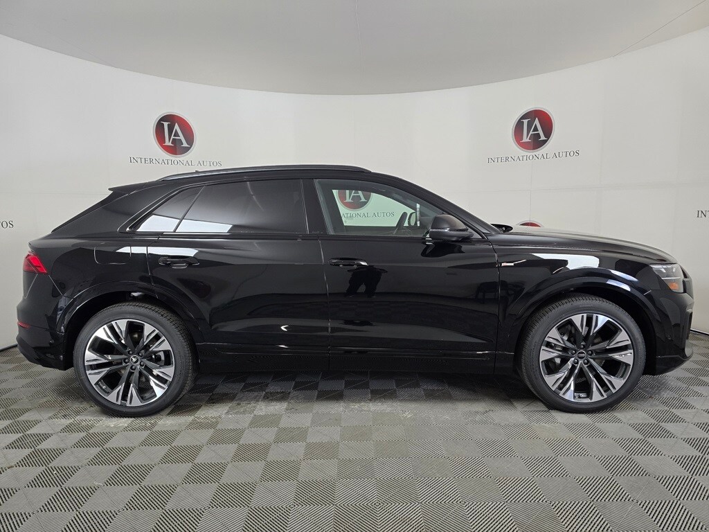 Mythos Black Metallic 2026 Audi Q8 55 Premium Plus quattro quattro 8-Speed Automatic with Tiptronic 3.0L TFSI 4-Way Power Lumbar For Passenger Seat, 4-Zone Automatic Climate Control, 7-Pin Adapter, ABS brakes, Active Cruise Control, Adaptive Air Suspension, Adaptive suspension, Alloy wheels, Anthracite Gray Audi Rings, Auto High-beam Headlights, Auto-dimming Rear-View mirror, Bang & Olufsen Premium Sound System with 3D Sound, Black Exterior Trim, Compass, Control Buttons in Gloss Black with Haptic Feedback, Dark Chrome Exhaust Tips, Dual-Pane Acoustic Glass For Side Windows, Electronic Stability Control, Exterior Parking Camera Rear, Front dual zone A/C, Front Seats with Ventilation, Heated door mirrors, Heated Front Bucket Seats, Heated front seats, Heated Rear Seats, Heated Steering Wheel, Illuminated Door Sills, Illuminated entry, Illuminated S Line Door Sills, Leather Seating Surfaces, LED Interior Lighting Plus Package, Low tire pressure warning, Memory seat, Navigation System, Navigation system: Audi MMI Navigation plus with Touch Response, Outside temperature display, Power Liftgate, Power moonroof: Panoramic, Power Rear Side Windows with Manual Tailgate Sunshades, Power Soft-Closing Doors, Premium Plus Package, Rain sensing wipers, Remote keyless entry, S Line Black Optic Package, S Line Exterior, Top View Camera System with Virtual 360 View, Traction control, Trailer Hitch, Wheels: 22" 5-Double-Arm Design with Bicolor Finish.
