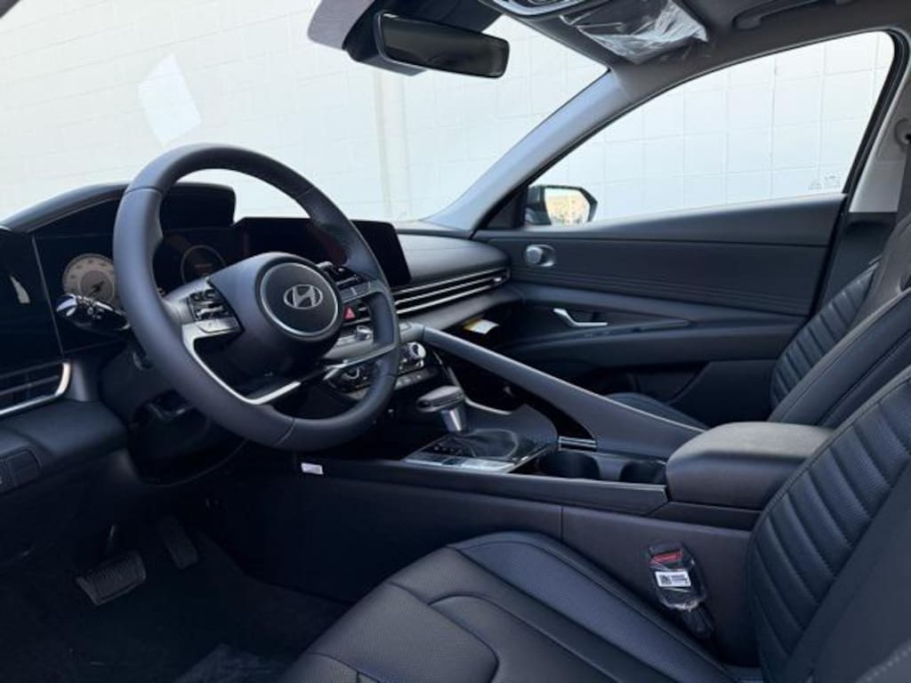 Elantra Limited, 4D Sedan, I4, CVT, FWD, Amazon Gray, Black w/H-Tex Leatherette Seats, 4-Wheel Disc Brakes, 8 Speakers, ABS brakes, Air Conditioning, Alloy wheels, AM/FM radio: SiriusXM, Apple CarPlay & Android Auto, Auto High-beam Headlights, Automatic temperature control, Brake assist, Bumpers: body-color, Cargo Tray, Carpeted Floor Mats, Delay-off headlights, Door Sill Plates, Driver door bin, Driver vanity mirror, Dual front impact airbags, Dual front side impact airbags, Electronic Stability Control, Emergency communication system: None, Exterior Parking Camera Rear, First Aid Kit, Front anti-roll bar, Front Bucket Seats, Front Center Armrest, Front dual zone A/C, Front reading lights, Front wheel independent suspension, Fully automatic headlights, H-Tex Leatherette Seats, Heated door mirrors, Heated Front Bucket Seats, Heated front seats, Illuminated entry, Low tire pressure warning, Navigation System, Occupant sensing airbag, Option Group 01, Outside temperature display, Overhead airbag, Overhead console, Panic alarm, Passenger door bin, Passenger vanity mirror, Power door mirrors, Power driver seat, Power moonroof, Power steering, Power windows, Radio: AM/FM/HD/SiriusXM Display Audio, Rear seat center armrest, Rear side impact airbag, Rear window defroster, Remote keyless entry, Security system, Speed control, Speed-sensing steering, Split folding rear seat, Steering wheel mounted audio controls, Tachometer, Telescoping steering wheel, Tilt steering wheel, Traction control, Trip computer, Turn signal indicator mirrors, Variably intermittent wipers, Wheels: 17" x 7.0J Machine Finish Alloy, Elantra Limited, 4D Sedan, I4, CVT, FWD, Amazon Gray, Black w/H-Tex Leatherette Seats.
