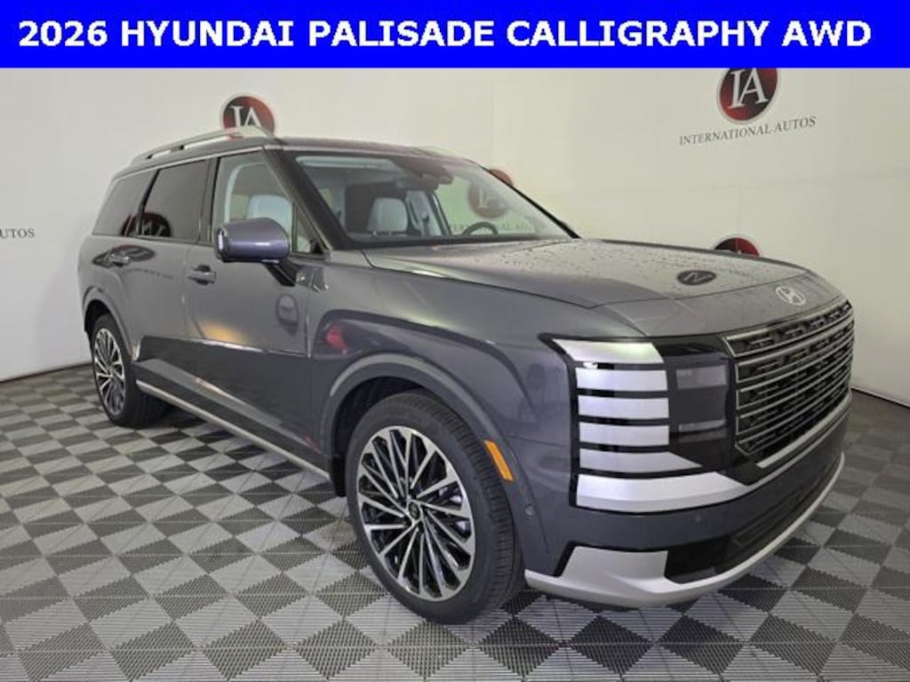Ecotronic Gray Pearl 2026 Hyundai Palisade V6 4D Sport Utility Calligraphy AWD 18/24 City/Highway MPG 8-Speed Automatic Price includes: $1250 - Hyundai HMF Dealer Choice : $1250 discount and 5.49% APR for 24 months. $44.09 per $1000 financed. Available to well qualified buyers who finance through Hyundai Motor Finance. H704. Exp. 12/01/2025
