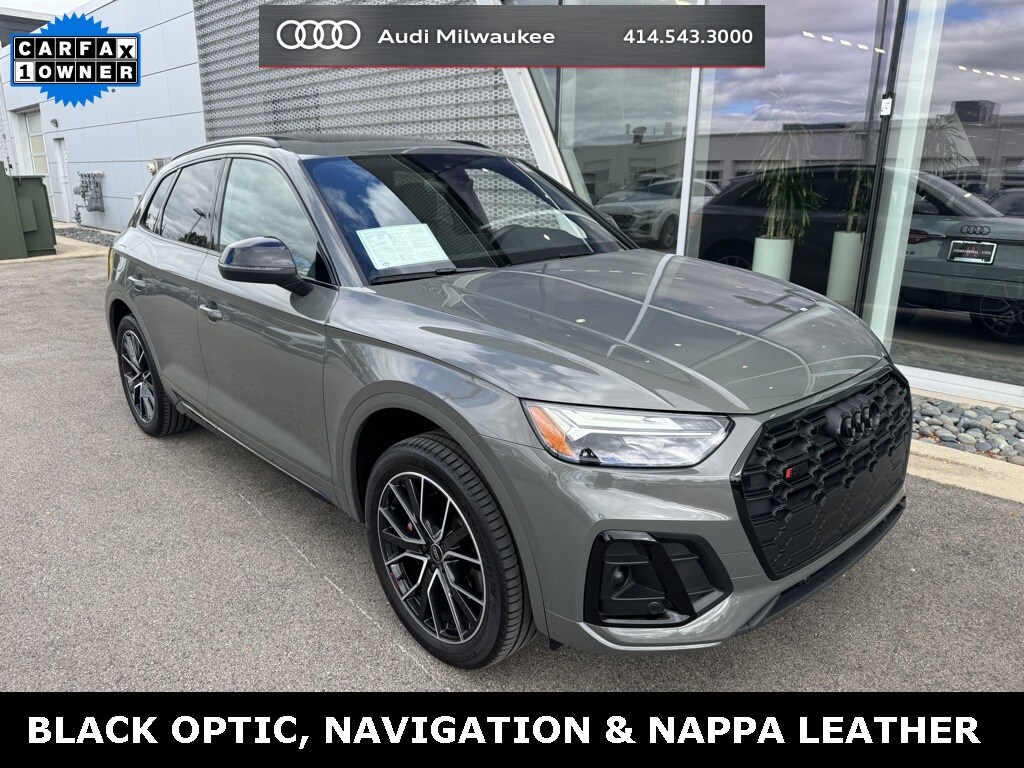 CARFAX One-Owner. Clean CARFAX. Chronos Gray Metallic 2023 Audi SQ5 Premium Plus quattro quattro 8-Speed Automatic with Tiptronic 3.0L TFSI Adaptive suspension, Alloy wheels, Audi Active Lane Assist, Audi Advanced Key, Audi Black Rings & Badges, Audi S Beam - Front Doors Only, Audi Virtual Cockpit Plus, Auto High-beam Headlights, Auto-dimming Rear-View mirror, Automatic temperature control, Bang & Olufsen 3D Sound System, Black Exterior Mirror Housings, Black Exterior Trim, Black Optic Package, Compass, Convenience Package, Driver Seat Memory, Electronic Stability Control, Exterior Parking Camera Rear, Fine Nappa Leather Seating Surfaces, Fine Nappa Leather Seats, Hands-On Detection Steering Wheel, Heated Front Sport Seats, Heated Steering Wheel, Leatherette Covered Center Console, Navigation Package, Navigation System, Panoramic Sunroof, Power Liftgate, Premium Plus Package, Radio: MMI Navigation Plus, Rain sensing wipers, Security system, Sport Exhaust Tips, Sport steering wheel, Top View Camera System, Traffic Jam Assist, Trailer Hitch, Wheels: 20" 5-V Spoke-Star Design.