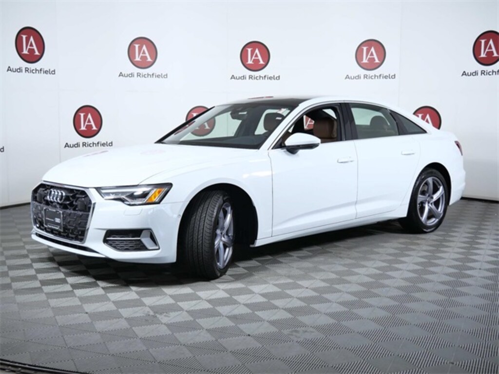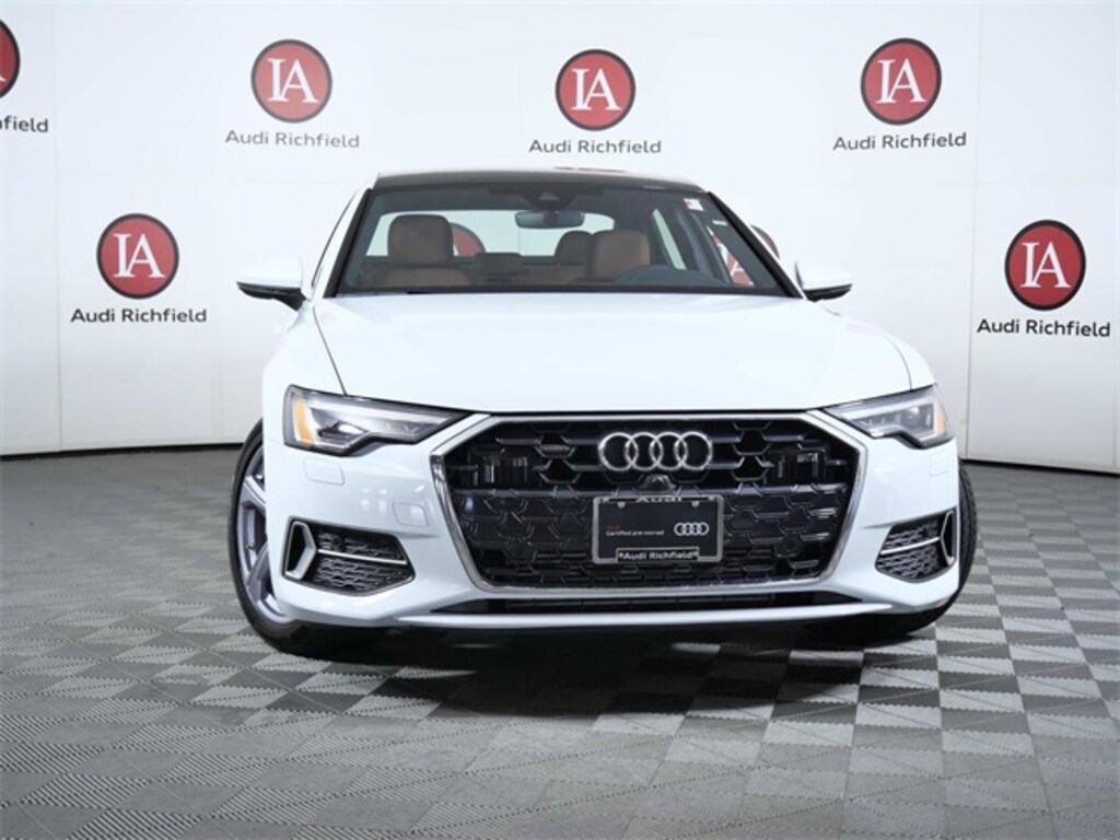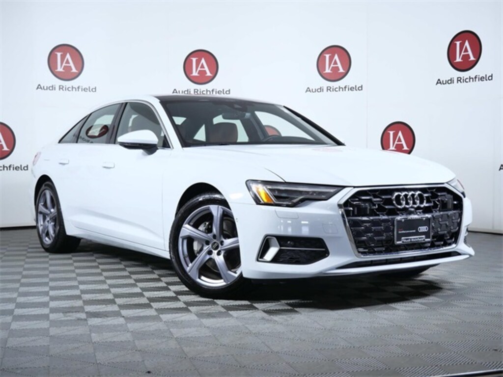 Experience luxury and performance seamlessly combined in the 2025 Audi A6 Sedan 45 TFSI Quattro. Finished in Glacier White Metallic, this sedan features an elegant Okapi Brown interior that exudes sophistication. Under the hood, the 2.0L TFSI I4 engine delivers refined power, paired with Audis legendary Quattro all-wheel-drive system for exceptional handling in all conditions.
