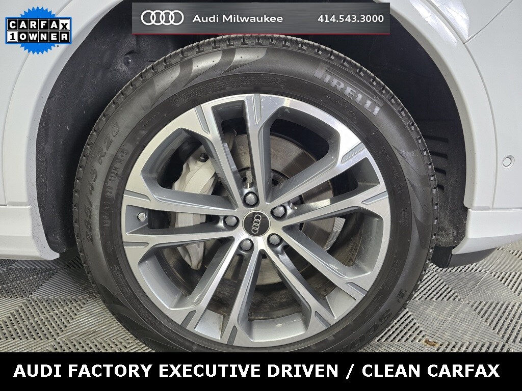10 Speakers, 3rd row seats: bench, ABS brakes, Active Cruise Control, Alloy wheels, Anthracite Gray Audi Rings, Audi Beam Rings, Auto High-beam Headlights, Auto-dimming Rear-View mirror, Automatic temperature control, Bang & Olufsen Premium Sound System with 3D Sound, Black Exterior Trim, Black Window Surrounds, Convenience Plus Package, Dark Chrome Exhaust Tips, Exterior Parking Camera Rear, Heated Front Bucket Seats, Heated Steering Wheel, Leather Seating Surfaces, Leather steering wheel, LED Interior Lighting Package Plus, Memory seat, Navigation system: Audi MMI Navigation plus with Touch Response, Power Liftgate, Power moonroof: Panoramic, Rain sensing wipers, Security system, Top View Camera System, Traffic Sign Recognition, Wheels: 20" 5-Double-Spoke Bicolor Finish.