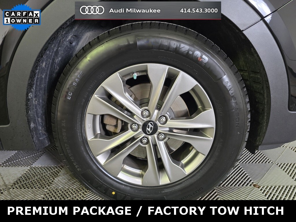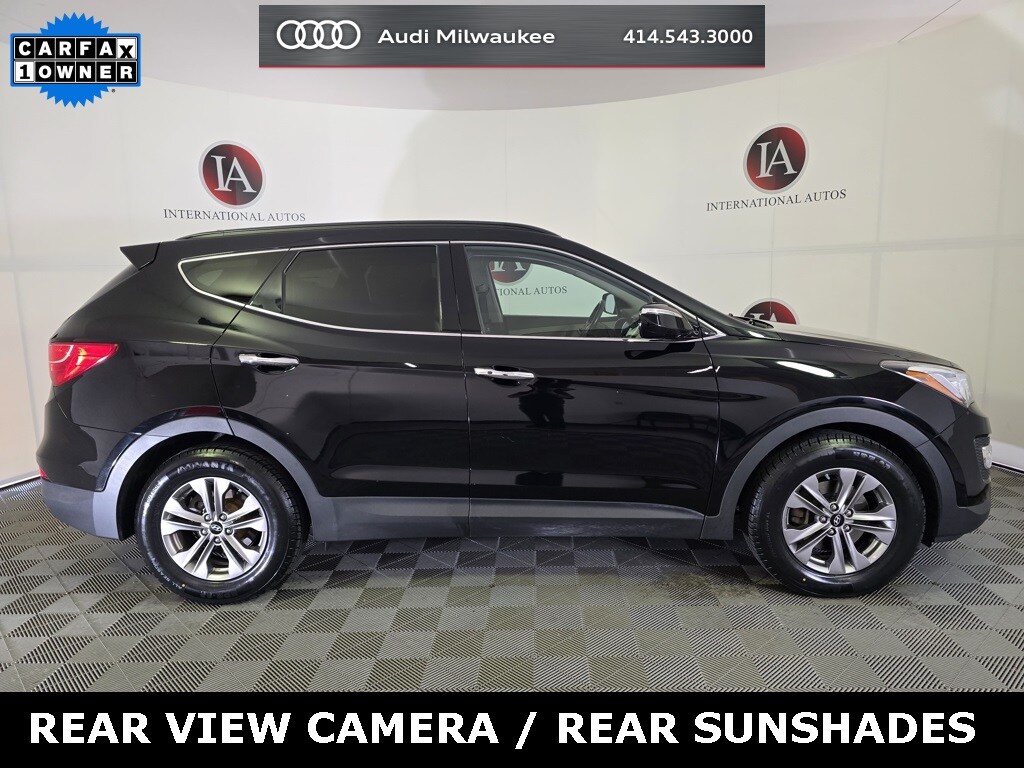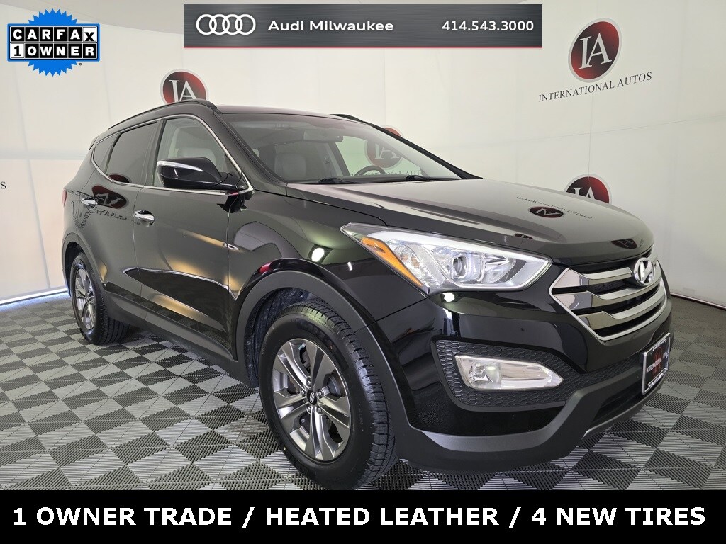 CARFAX One-Owner. Twilight Black 2015 Hyundai Santa Fe Sport AWD 6-Speed Automatic with Shiftronic 2.4L I4 DGI DOHC 16V 17" Alloy Wheels, Alloy wheels, Auto-Dimming Interior Mirror w/Homelink/Compass, Automatic Headlight Control, Blind Spot Detection (BSD) System, Brake assist, Dual Zone Automatic Temperature Control, Electroluminescent Gauge Cluster, Fog Lights, Heated Front Seats, Lane Change Assist, Leather Seating Surfaces, Leather Wrapped Steering Wheel & Shift Knob, Manual Rear Side Window Shades, Option Group 02, Popular Equipment Package 02, Power Front Passenger Seat, Premium Package 03, Proximity Key Entry w/Push Button Start, Radio: AM/FM/SiriusXM/CD/MP3 Audio System, Rear Cross-Traffic Alert, Rear window wiper, Remote keyless entry, Security system, Side Mirror-Mounted Turn Signal Indicators, Sliding second row seats w/cargo area releases, Speed control, Telescoping steering wheel, Tilt steering wheel, Tow Hitch.