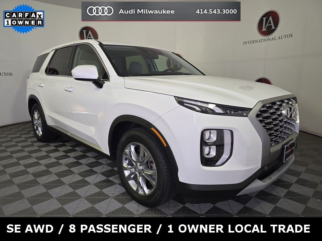 CARFAX One-Owner. Hyper White 2020 Hyundai Palisade SE AWD 8-Speed Automatic with SHIFTRONIC V6 3rd row seats: split-bench, 6 Speakers, Air Conditioning, Alloy wheels, Apple CarPlay & Android Auto, Auto High-beam Headlights, Electronic Stability Control, First Aid Kit, Heated door mirrors, Option Group 01, Outside temperature display, Radio: AM/FM/MP3 Display Audio, Rear window wiper, Reclining 3rd row seat, Security system, Speed control, Split folding rear seat, Stain Resistant Cloth Seat Trim, Telescoping steering wheel, Tilt steering wheel, Wheels: 18" x 7.5J Painted Finish Alloy.