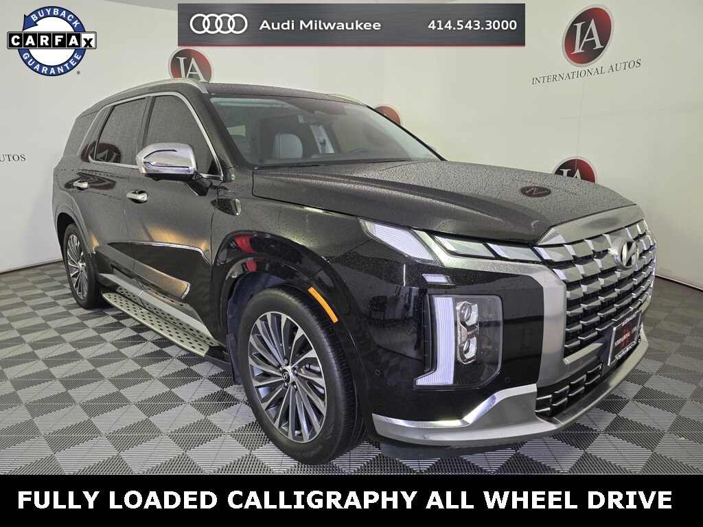 Abyss Black Pearl 2024 Hyundai Palisade Calligraphy AWD 8-Speed Automatic with SHIFTRONIC V6 12 Speakers, 3rd row seats: split-bench, All-Season Fitted Liners, Alloy wheels, Apple CarPlay & Android Auto, Auto High-beam Headlights, Auto-leveling suspension, Automatic temperature control, Exterior Parking Camera Rear, harman/kardon® Speakers, Heads-Up Display, Heated & Ventilated Front Bucket Seats, Heated front seats, Heated rear seats, Heated steering wheel, Memory seat, Navigation System, Option Group 01, Outside temperature display, Power Liftgate, Power moonroof, Premium Nappa Leather Seat Trim, Radio: AM/FM/MP3 Premium Audio System, Rain sensing wipers, Reclining 3rd row seat, Speed control, Telescoping steering wheel, Tilt steering wheel, Ventilated front seats, Ventilated rear seats, Wheels: 20" x 7.5J Calligraphy Exclusive Alloy.